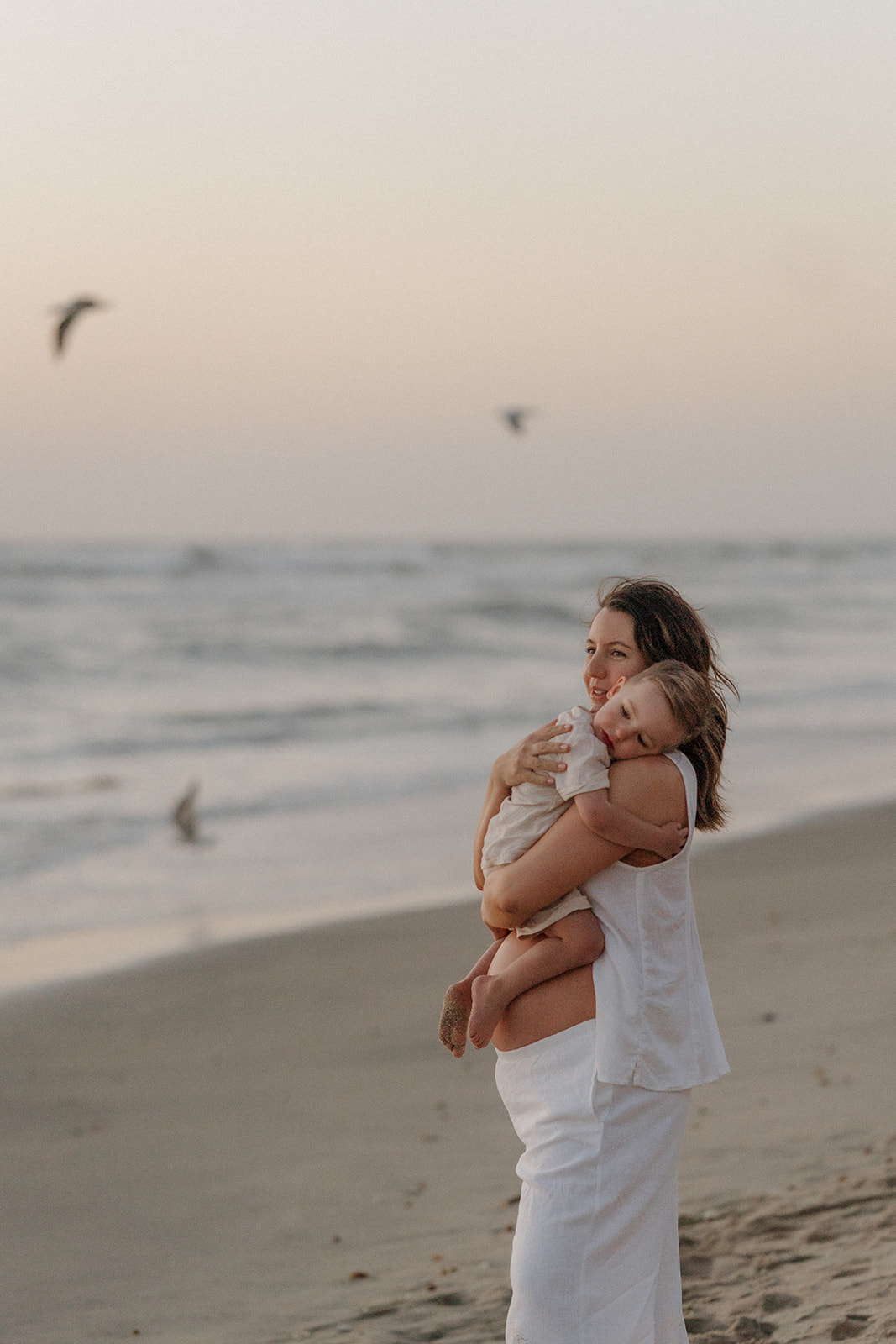 After what felt like an endless week of cold and rain, the sun finally showed up for Katie’s maternity session at Moonlight Beach—and it could not have been more perfect. The beach was glowing, Katie was glowing, and her little boy stole the show with how much he loved on his mama’s belly. You could just see how excited he is to become a big brother! We even had time for an outfit change (thank goodness for my trusty pop-up changing tent!) which gave us two totally different looks without missing a minute of that golden sunshine. The whole evening was so relaxed, joyful, and full of those little moments that make family sessions feel extra special.